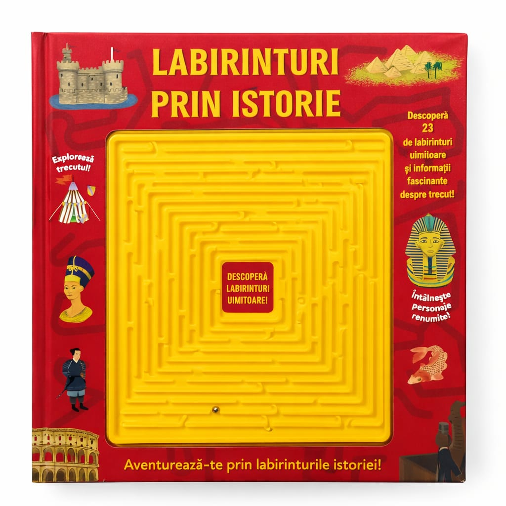 Labirinturi prin Istorie” este o carte educativă interactivă care îi poartă pe copii într-o aventură fascinantă prin trecut, folosind 23 de labirinturi tematice. Cei mici vor explora civilizații antice, castele medievale și personaje celebre, învățând istorie într-un mod distractiv și captivant. Cartea stimulează logica, atenția și curiozitatea, fiind ideală pentru învățare prin joacă.